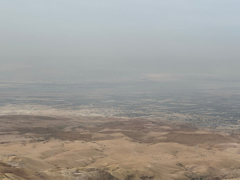 And now we are on to our second stop. Mount Nebo where it is said Moses stood and looked over the promised land that he would never be able to enter. This is also said to be the site where Moses died. On a clear day you can see to Jerusalem. The weather today is not clear, but we can see the Dead Sea and the river Jordan.