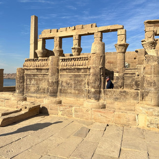 First stop Philae Temple. This Temple is dedicated to Isis, the Goddess of Love. It is on an island a bit south of the old dam. It was originally a little further south, but when it was threatened to be flooded by the new dam, the temple was isolated with a moat and deconstructed. They cut the complex into 45,000 blocks and meticulously reconstructed it on the higher island. In fact, they enlarged the island to be able to accurately rebuild the temple. The project took 8 years to complete and was completed in 1974.