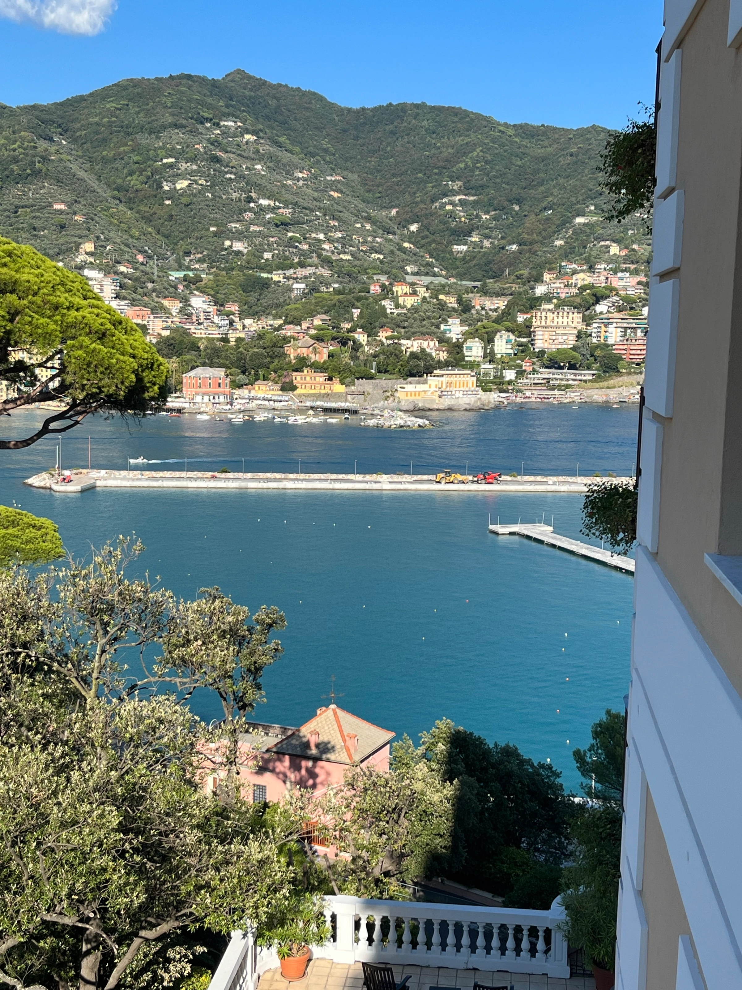 And we are on our way to Portofino. It is a long train ride…4 1/2 hours!! And we need to tackle our luggage. Jim and I pack in carry on size and Carrie has a larger suitcase….but it turns out although my suitcase weighs more than hers, her suitcase is larger; it can’t fit anywhere! We move it all around the train for the next 4 1/2 hours.
