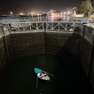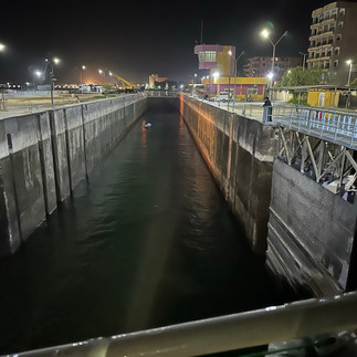 And finally moving thru the locks – led by the salesman. We hope the gates open before our boat gets there – or he will be crushed!
